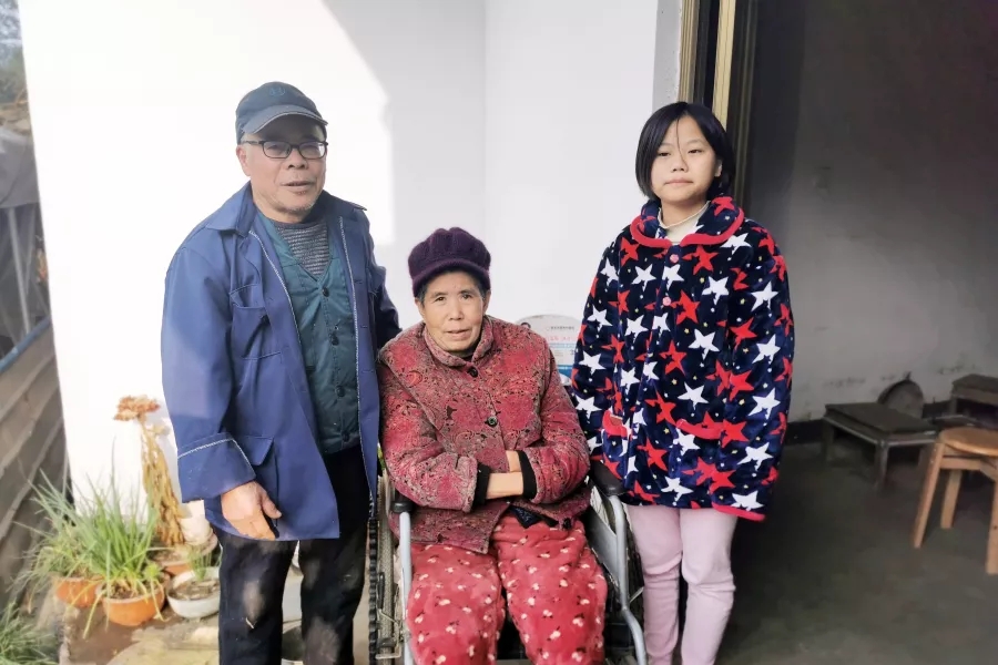 第一戶,潘同學家住臨安板橋鎮(zhèn),房屋仍是三十年前的樣貌,當天潘同學的爸爸外出打零工,僅爺爺奶奶在家,母親在她很小的時候離家出走至今未歸。爺爺年事已高只能在家操持家務,奶奶因為車禍傷了腿腳需要靠輪椅行動。全家的收入僅靠父親打工維持。