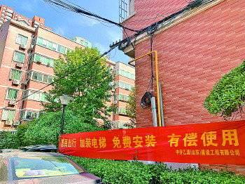 小區內懸掛著免費加裝電梯的宣傳橫幅。 “共享電梯”的宣傳彩頁。 在濟南,既有住宅加裝電梯正在如火如荼地進行中。最近,一些居民發現有企業稱,可在其小區免費加裝電梯。在天橋區一小區,中升乙源建設工程有限公