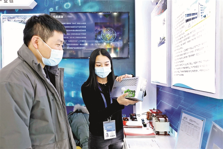 工作人員向市民展示電梯空氣消毒機(jī)。 本報(bào)訊(龍華新聞?dòng)浾?丁小梅/文 蔡維澤/圖)強(qiáng)力消毒、除菌率高達(dá)99%、遠(yuǎn)程云控、生物識(shí)別……深圳市英維克環(huán)境健康科技有限公司帶來(lái)的電梯空氣消毒殺菌機(jī),1小時(shí)