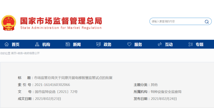 浙江新聞客戶端 |記者 李睿 通訊員 趙文瓊 近日,市場監管總局發文《市場監管總局關于同意開展電梯智慧監管試點的批復》,在上海市、南京市、杭州市、廣州市開展首批電梯智慧監管試點。 近年來,杭州加快打造
