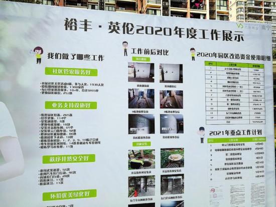 一部電梯至少安裝5個廣告,有的還有LED屏,不少業主提出疑問—— 小區電梯廣告費到底進了誰的口袋? 南寧市裕豐·英倫小區展示2020年度工作情況。見習記者 禤智君攝 小區電梯廣告年收入上萬元,業主能享