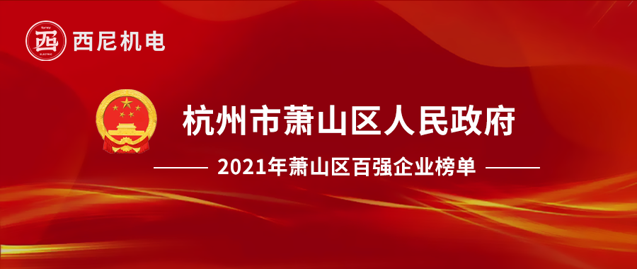 TOP 100 ENTERPRISES 近日,2021年度蕭山區百強企業名單出爐,包括工業企業70家、服務業企業40家、建筑業企業10家、農業企業5家、科技創新企業15家、金鳳凰企業10家。西尼機電(