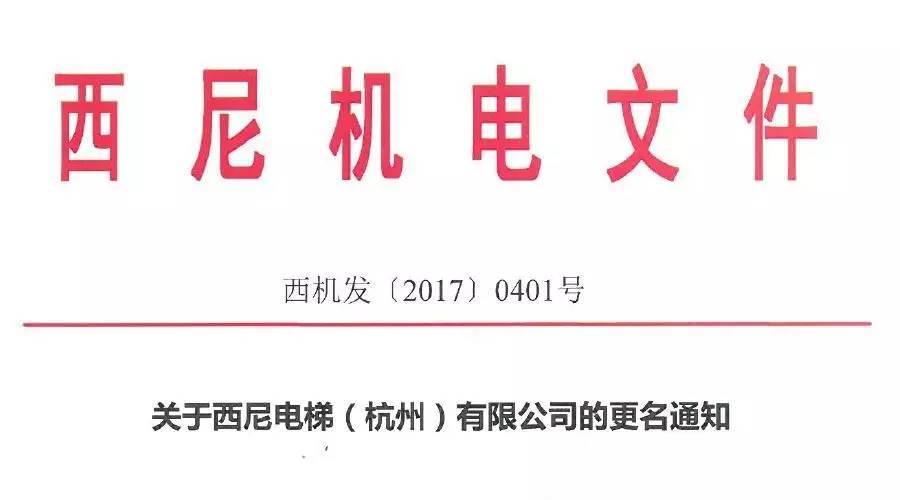 關于“西尼電梯”正式更名為“西尼機電”的文件通知