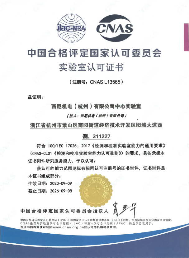 近期,西尼中心實(shí)驗室——“拉力實(shí)驗中心”和“電磁兼容實(shí)驗中心”,獲得了中國合格評定國家認(rèn)可委員會(CNAS)授予的實(shí)驗認(rèn)可證書,標(biāo)志這西尼機(jī)電的研發(fā)檢測能力更上一個層次,將對產(chǎn)品質(zhì)量控制、創(chuàng)新研發(fā)提供更高質(zhì)量、更精準(zhǔn)的技術(shù)保障。