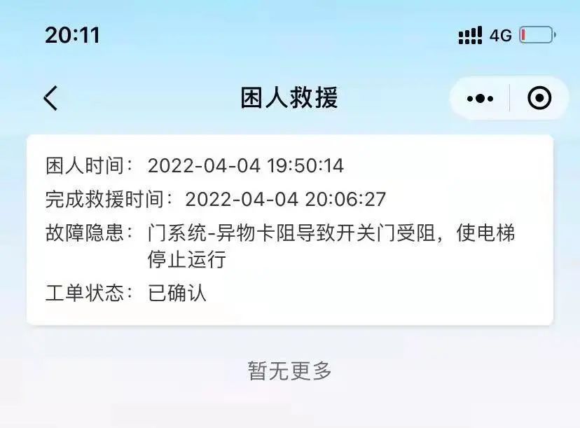 4月4日晚,定西路某大廈突然發(fā)生電梯困人事件,被困人員通過掃描轎廂內(nèi)的智慧電梯二維碼發(fā)出呼救信號。