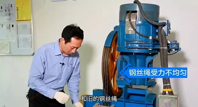 在嚴重的情況下,鋼絲繩有可能和曳引輪產生非正常的滑移引起安全事故,這就好比我們的轎車在更換輪胎的時候也是前輪或者后輪同時成對更換,所以我們更換鋼絲繩的時候,需要全部同時更換。