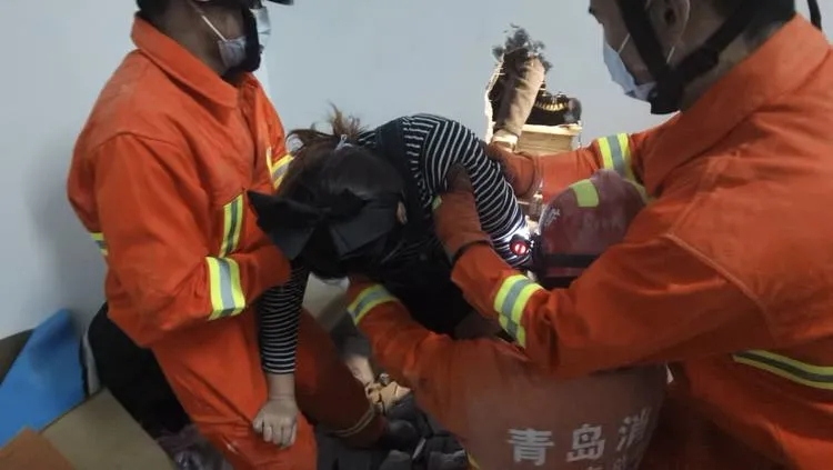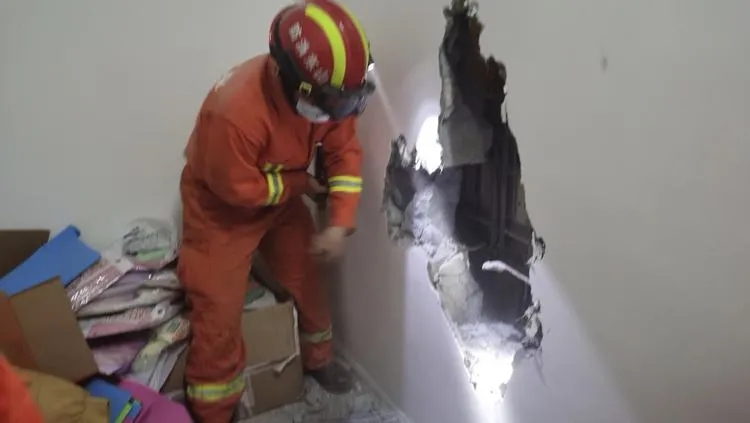 近日,青島市黃島區消防救援大隊接到求救電話,某小區43號樓有人被困在電梯里。被困電梯有七人,電梯向下運行時突然發生故障。小區物業與電梯維保人員修了兩個多小時沒修好。隨即,被困人員家屬撥打119求助。電梯被困人員已被困兩個多小時,消防救援人員在與物業人員商量后決定從外側破墻,將被困人員救出。