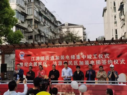 5月7日,江灣鎮街道舉行加裝電梯集中竣工暨紀念居民區、沽源居民區加裝電梯簽約儀式,10臺電梯的投入使用徹底解決了老人“下樓難”的問題,街道近期已有24臺電梯雙公示,使居民“不離老宅、安享電梯”不再是夢。