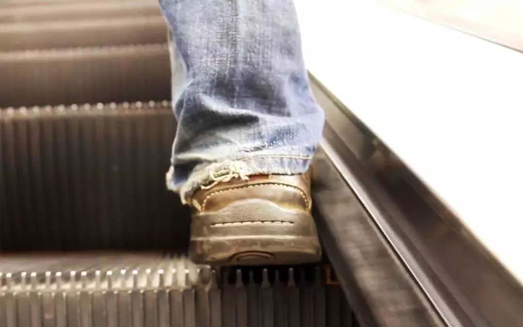 此案例中,并沒人有去按紅色急停按鈕,自動扶梯為什么會自動停下來呢?因為扶梯擁有“圍裙板異物卡入保護(hù)裝置!”,該裝置的作用是當(dāng)有異物卡入梯級與圍裙板之間時,圍裙板變形使得安全開關(guān)動作,自動扶梯自動停止運行,從而避免危害的進(jìn)一步擴(kuò)大??梢韵胂?,如果扶梯不及時停下來,腳被帶到梳齒板處,那后果就不敢想象了。