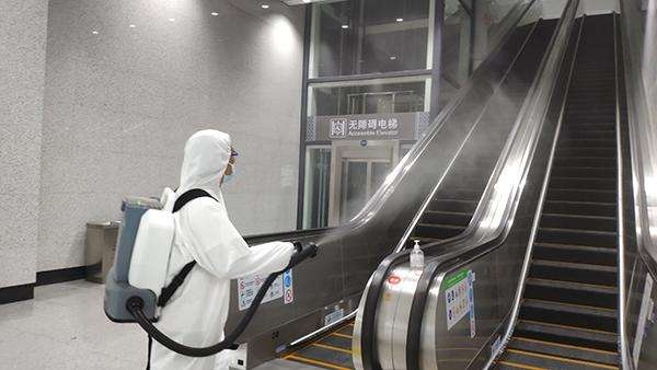 1.廂式電梯內部每天至少1次空氣消毒。自動扶梯扶手消毒每4小時1次,地鐵、商場、超市、醫院等人員密集場所的電梯扶手、按鈕應增加消毒頻次。